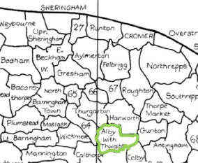 Alby with Thwaite is a small parish in the North-East of Norfolk. Just over 2 square miles, and a population of c 200-300 people, it becomes clear that people would be living or working in different parishes. Alby to Sheringham on the coast is only 7 miles but 5 parishes!