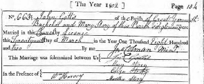 John 192 Gotts was born in 1779 in St Helens parish, Norwich. He married Mary 281 Story in Wymondham in 1802.