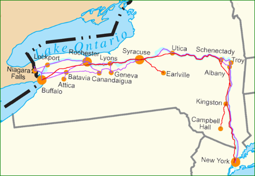 It was decided to build the Erie Canal from Buffalo to Albany, which together with the Hudson River going due South to New York, formed a viable waterway. By 1825 the canal was complete, and they took boats from Buffalo to New York in ten days through 270 miles of canal and 150 miles of the Hudson River to New York. This route fuelled the massive change in population in New York State, and assured New York as the financial capital. For more details click here: Wikipedia Samuel and Martha initially went to Somerset, about 10 miles northeast of Lockport.