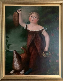 He is holding up some meat, which is why the dog is looking up. She also has a painting of her grandfather Percy Nicholas aged about 6 or 7 dressed in what looks like girls clothes.