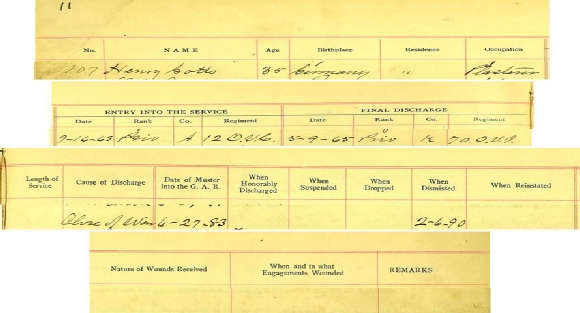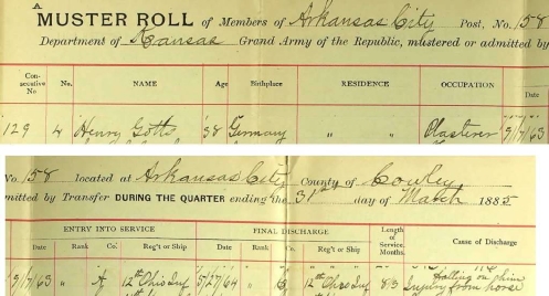 We know this information through the Kansas Grand Army of the Revolution (GAR) records, a community support organisation for veterans similar to the Royal British Legion in UK. The information has been cross-checked against the official military records.