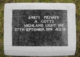 The 20 year old Pte. Abraham Gotts, 2nd HLI was the last soldier to die in North Russia. He died of wounds on 27th September 1919, sustained in a failed raid on a Red Finnish (Finns sympathetic to the Soviets) hideout on 23rd September. (c/o1914-18 InvisionZone)
