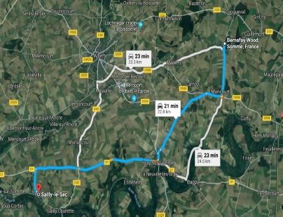 The cemetery at Dive Copse is 1.5km NE of Sailly-le-Sec.
