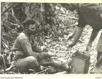 “Eric Aubrey being served tea during the attack on Japanese positions in the Piaterapaia sector by troops of the 25th infantry battalion 30 Dec 1944”