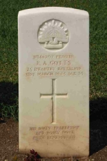 “ERIC AUBREY GOTTS was born on 20 July 1909 and christened at St Matthews Church of England, Windsor, NSW on 16 August 1909. He enlisted on 29 October 1941 in the 25th Australian Infantry Battalion and was killed in action on 31 March 1945 at Bougainville in the Solomon Islands. He was buried at Port Moresby (Bomana) War Cemetery.”
