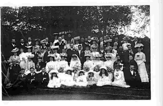 Vera Preston (tree #071) has this photo of a posh wedding, associated with the Henry Shearman-Davenport family in Essex/Hackney. The Costume Museum in Bath have dated it as 1907-9, taken by Fred Spalding, whose studios were near Shire Hall in Chelmsford. Vera's grandma Gotts and her aunt are in the photo. Her aunt made all the bridesmaids' dresses in her workrooms near Baker St in London. Any help would be gratefully received.
