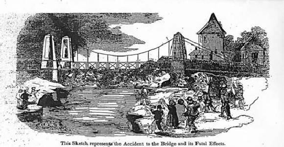 The verdict of the jury was made on a test case of Louisa Utting, and concluded that she had died by falling into the river from the bridge on 2nd May 1845 due to a defect in the joint or welding of the iron bar that first gave way, and to the quality of the workmanship being inferior to the original requirement.