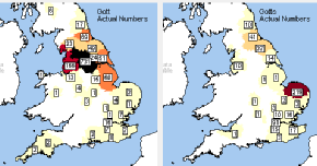 Patrick Palgrave writes regularly on surnames in ‘Let’s Talk’ magazine, and in 2017 used the maps below to review the surname Gotts and Gott.