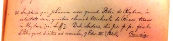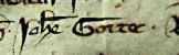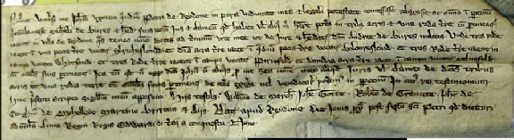 In both these cases John Gotte is a witness to land records, which would be in the manorial court. He does not seem to be involved in the transaction, only a witness to it, so presumably he had some standing in the community? The first is in 1335, for Johanna, wife of Peter of Reydon. His name is third line from the bottom, and synopsis is also in Latin: