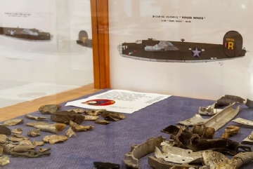 These are parts that were collected from the crash. Here they are displayed as part of an exhibition about the raid in Ploesti in 2019.