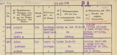 The Red Cross site has details of all the prisoners of war (POW) it is aware of. This index card shows Matthew’s details and points to the other images they have.