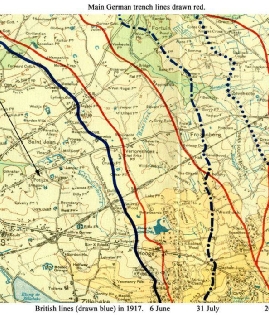 Other entries in the Battalion Diary show they were based near Potijze, near Ypres. On this map Potijze is marked with the arrow.