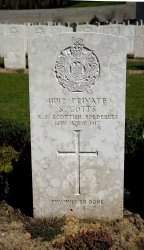 Sidney Gotts was a Private No 41012 in the 6th Battalion Kings Own Scottish Borderers. He died of his wounds on 16/4/1917 after Flanders and his grave X1X 12a is at Etaples Military cemetery. This Cemetery was designed by Lutyens.
