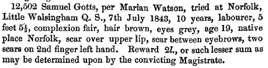 This shows Samuel’s prison number, and confirms the ship he was transported on, the Marion. I am not sure what the word Watson is, possibly the captain?. It also confirms the details of his conviction.