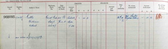 The second account of 4/2d is paid to Elizabeth Docking in 1920. His widow, Elizabeth, had married Charles Docking late in 1915, hence the change of name.